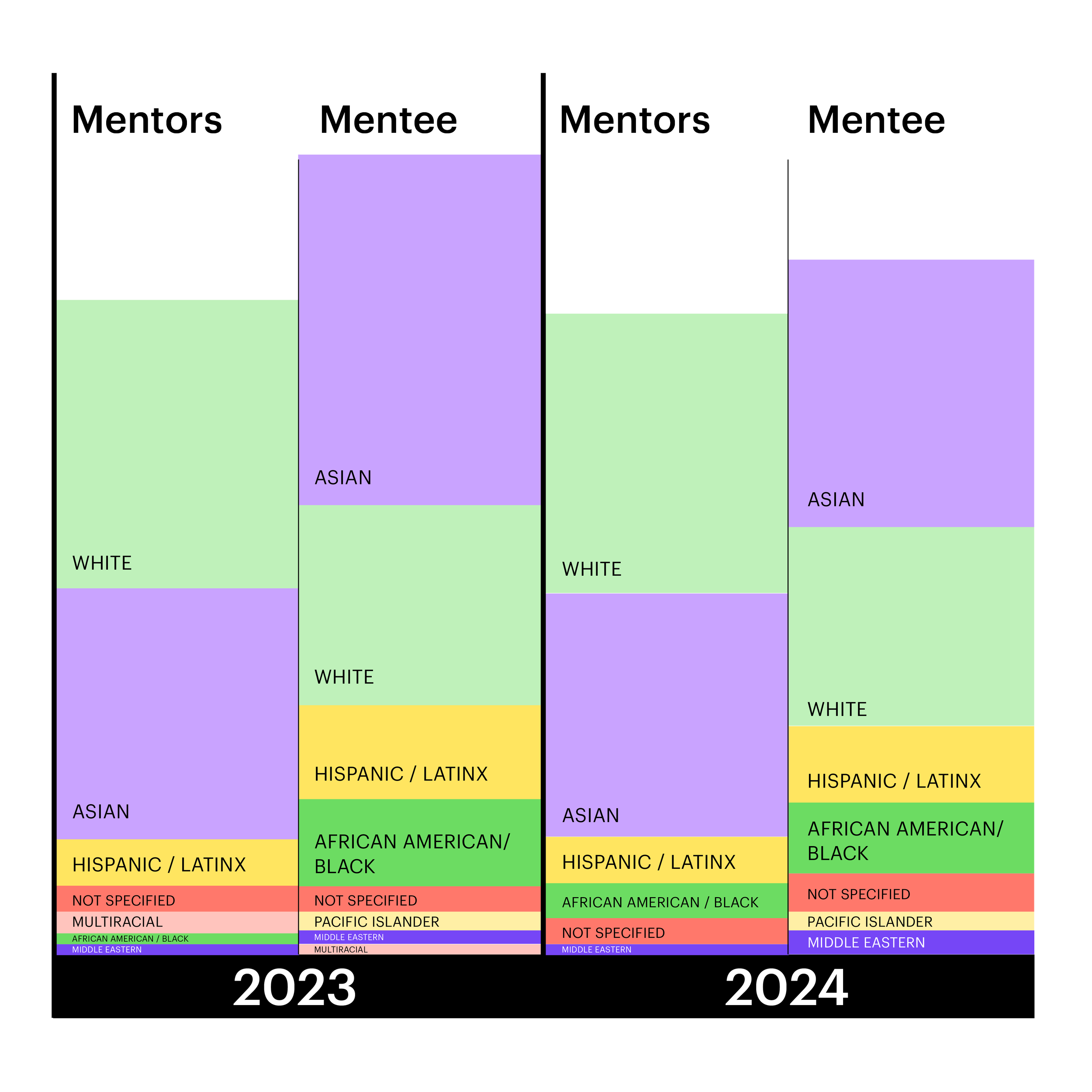 ↑ Race distribution of mentors and mentees in 2023 and 2024